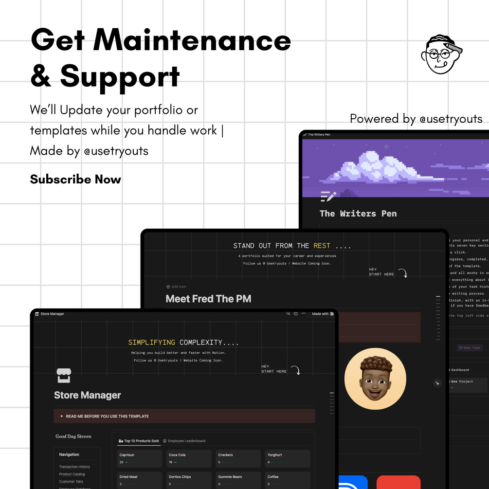 Disclaimer: Our maintenance and support plan encompasses minor changes. However, any substantial alterations to the design or structure, such as adding new pages, may incur additional costs. This is for only Portfolios built with Notion
